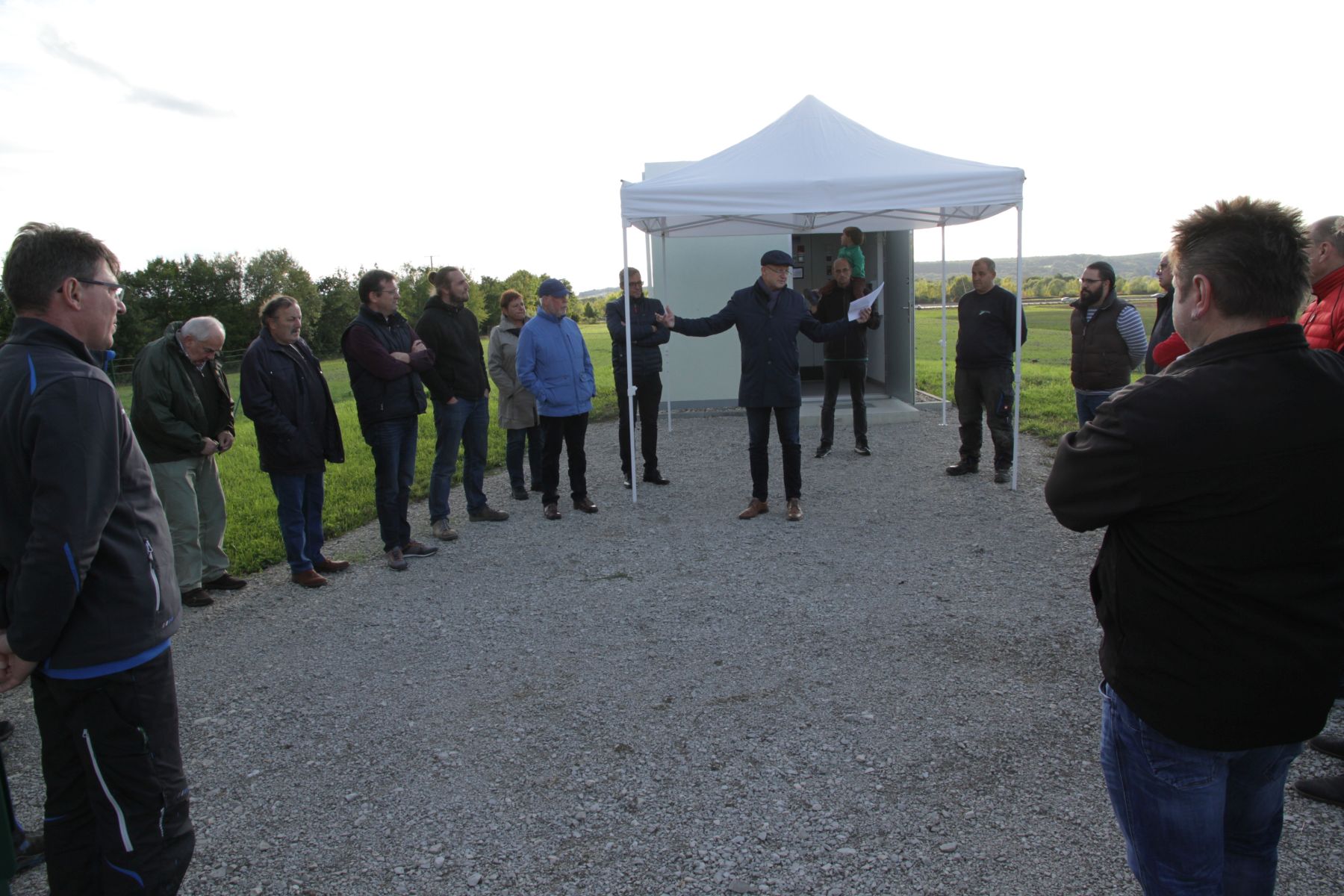 Das kleine, unscheinbare Gebäude inmitten der Flur zwischen Unterstürmig und Buttenheim verrät nicht, welch aufwändige Technik und unterirdisches Bauwerk sich eigentlich darin und darunter verbirgt. 40 Meter gehen dort Rohre in die Tiefe, weit über 200.000 Kubikmeter an Grundwasser im Jahr kann die Eggolsheimer Gruppe mit ihrer Neuinvestition nun zusätzlich ins eigene Trinkwassernetz einspeisen. „Wir versorgen rund 17.000 Einwohner mit frischem Wasser. Der Bedarf ist in den letzten Jahren stark angestiegen, wir haben mit der Investition von rund einer halben Million Euro für den neuen Brunnen zukunftsorientiert gehandelt um die Versorgung in den vier Mitgliedsgemeinden Eggolsheim, Hallerndorf, Buttenheim und Altendorf auch langfristig zu sichern“, sagte ZWE-Verbandsvorsitzender Claus Schwarzmann bei der offiziellen Inbetriebnahme des Tiefbrunnes.