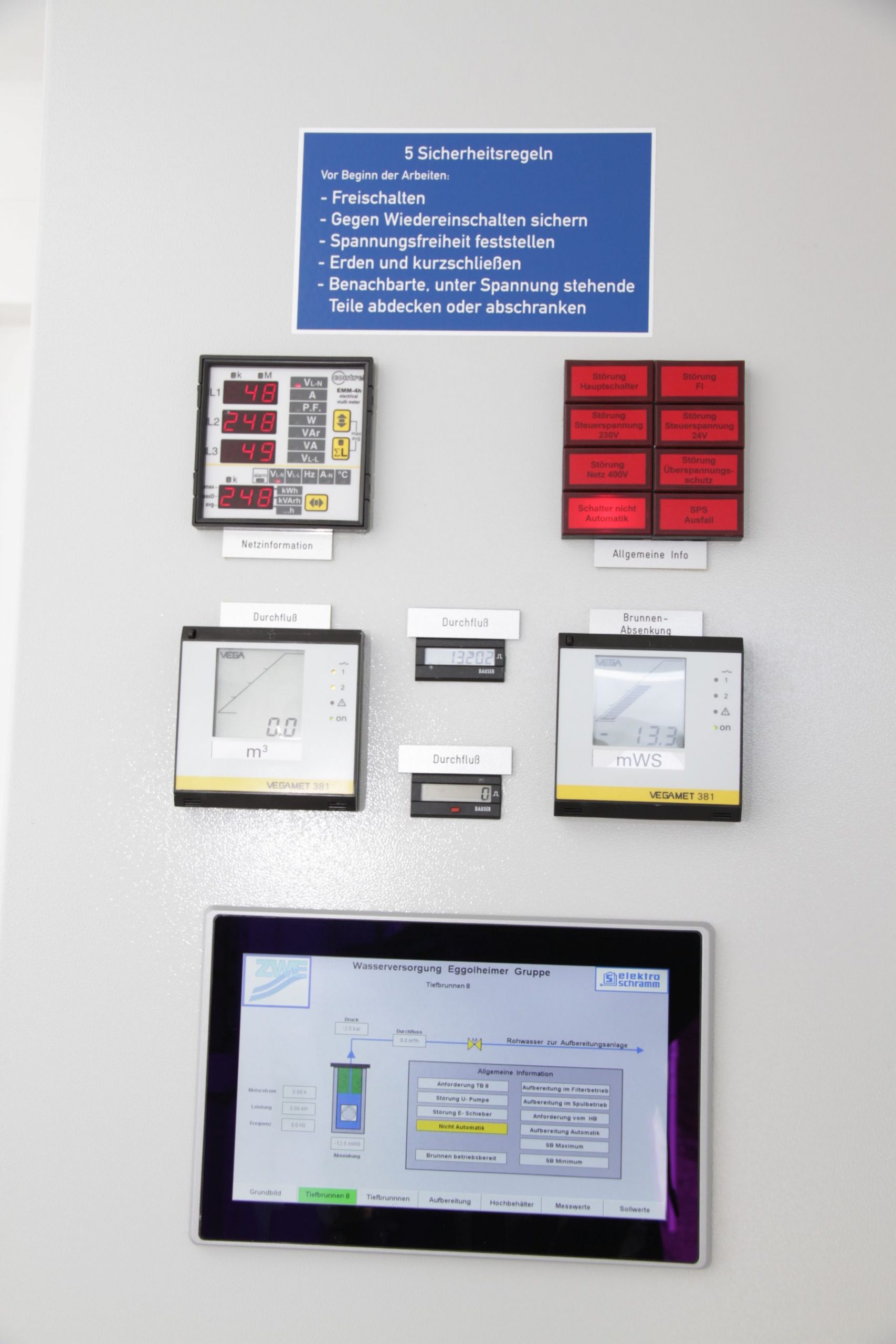 „Die Förderkapazität der vorhandenen Tiefbrunnen erreichte bei stetig steigendem Wasserverbrauch ihre Grenzen. Somit war der Ausbau des 8. Brunnens ein folgerichtiger und wichtiger Schritt“, freuen sich die Bürgermeisterkollegen des Eggolsheimer Gemeindechefs Claus Schwarzmann, Gerhard Bauer aus Hallerndorf, Michael Karmann aus Buttenheim und Karl-Heinz Wagner aus Altendorf bei der feierlichen Inbetriebnahme und drückten gemeinsam den „Startknopf“ des Pumpwerkes. Das dort geförderte Rohwasser wird zusammen mit dem Wasser der anderen Tiefbrunnen zum Wasserwerk nach Unterstürmig gefördert. Dort aufbereitet und streng kontrolliert kommt es ins Versorgungsnetz und sprudelt dann in gewohnter Qualität aus den Wasserhähnen in den vier Mitgliedsgemeinden.
